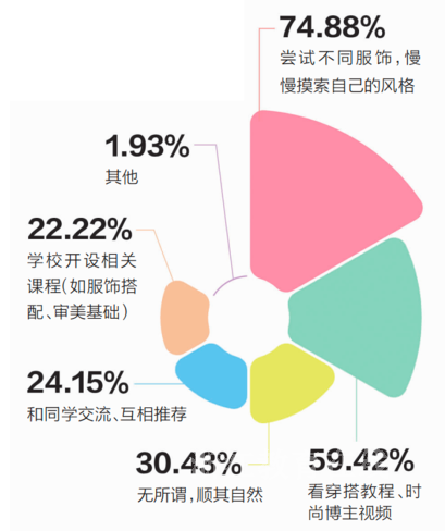 中学生的服饰审美从哪里来?43.06%的同学自主探索,在试错中找到喜欢的风格;17.22%的同学受博主、明星影响,在潮流资讯里捕捉灵感。这种主动探索的姿态,藏着他们对“变美”这件事的认真。