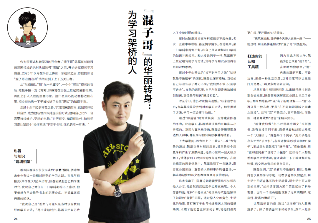 走过十余年知识科普之路,学习对陈磊而言,已如同呼吸一样自然,成为他与世界保持连接的方式。他将自己比作一台需要持续维护、更新的电脑:“世界在变,知识在迭代,持续学习是让我这个‘操作系统’不至于卡顿、死机的唯一方法。”