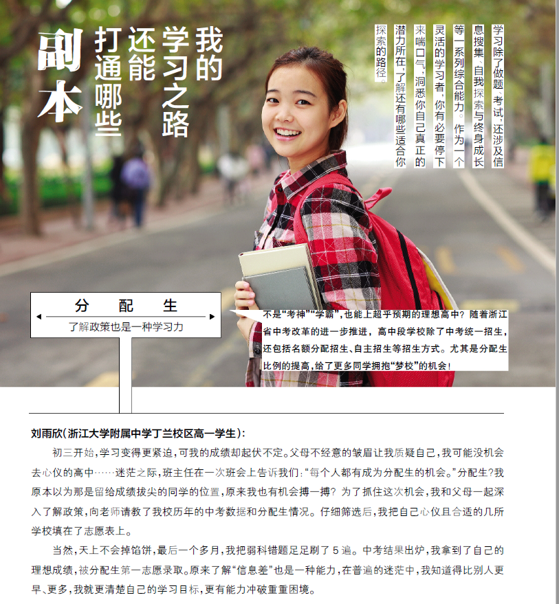 不是“考神”“学霸”,也能上超乎预期的理想高中?随着浙江省中考改革的进一步推进,高中段学校除了中考统一招生,还包括名额分配招生、自主招生等招生方式。尤其是分配生比例的提高,给了更多同学拥抱“梦校”的机会!