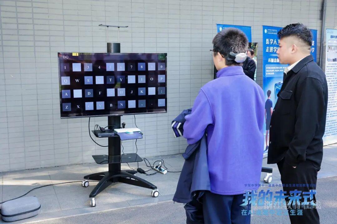同学在体验脑机接口“意念打字”系统
