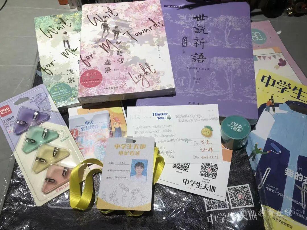 拆开这份小记者大礼包的瞬间,心里满是惊喜与温暖,仿佛捧着一整个青春里的新闻梦。从印着可爱图案的帆布包,到沉甸甸的小记者证、《中学生天地》的刊物与手账本,每一样物件都像是为我的小记者之旅量身打造的勋章,既藏着对我过去努力的肯定,也满含着对未来的期许。指尖划过小记者证上的照片,看着那些刊物,突然觉得自己和“记录者”这个身份的联结,又紧密了几分。今年的小记者经历让我收获了一群并肩前行的伙伴,也让我更加确定对记录与发声的热爱,会一直扎根在心底。
