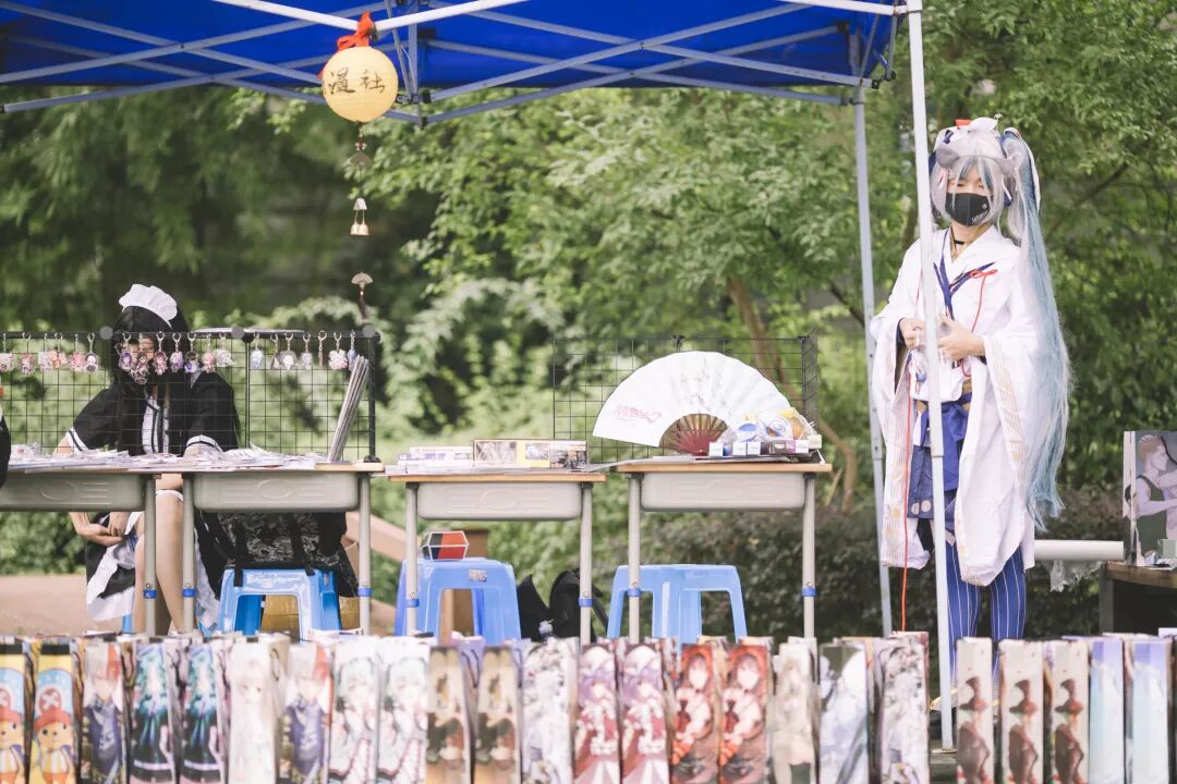 最热闹的要属正始中学动漫社了,社员们有cos动漫形象的,有在摊位前卖力吆喝的,动漫福袋更是吸引了许多人的驻足。