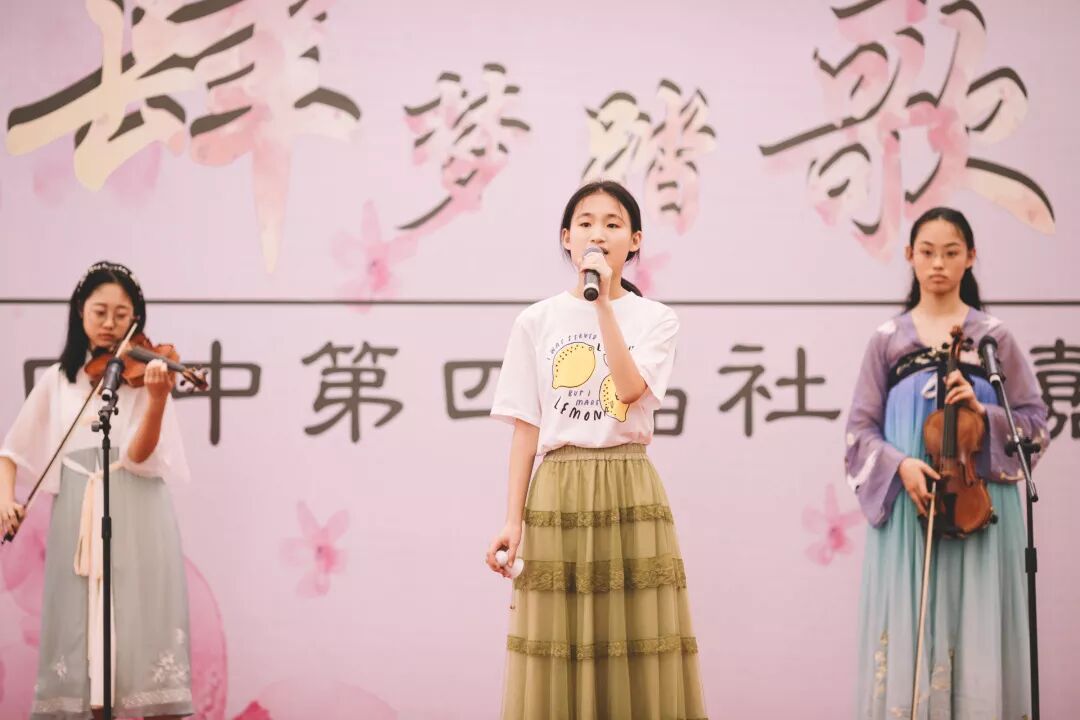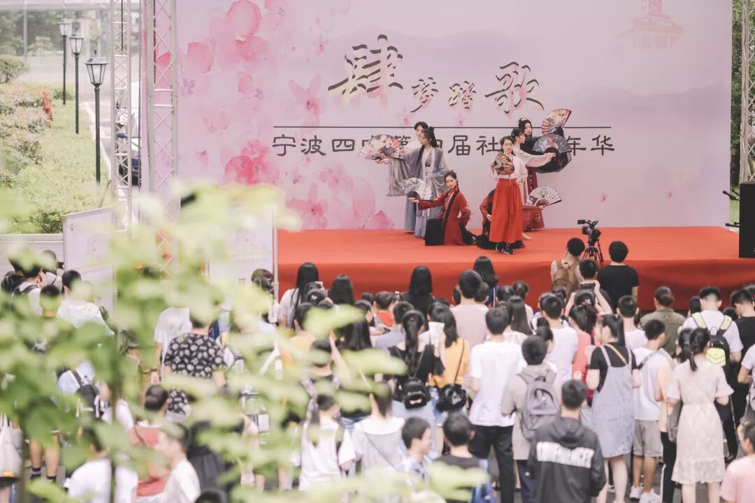 林荫道上,身着汉服的少女认真地制作精致的发簪,穿着白衣的少年弹着吉他唱着民谣,从二次元穿越而来的动漫人物并肩说笑,一身素简的女孩款款倒出一杯冒着热气的绿茶……这不是什么迷惑行为大赏,而是由浙江省宁波市第四中学举办的第四届社团嘉年华“肆梦踏歌”!