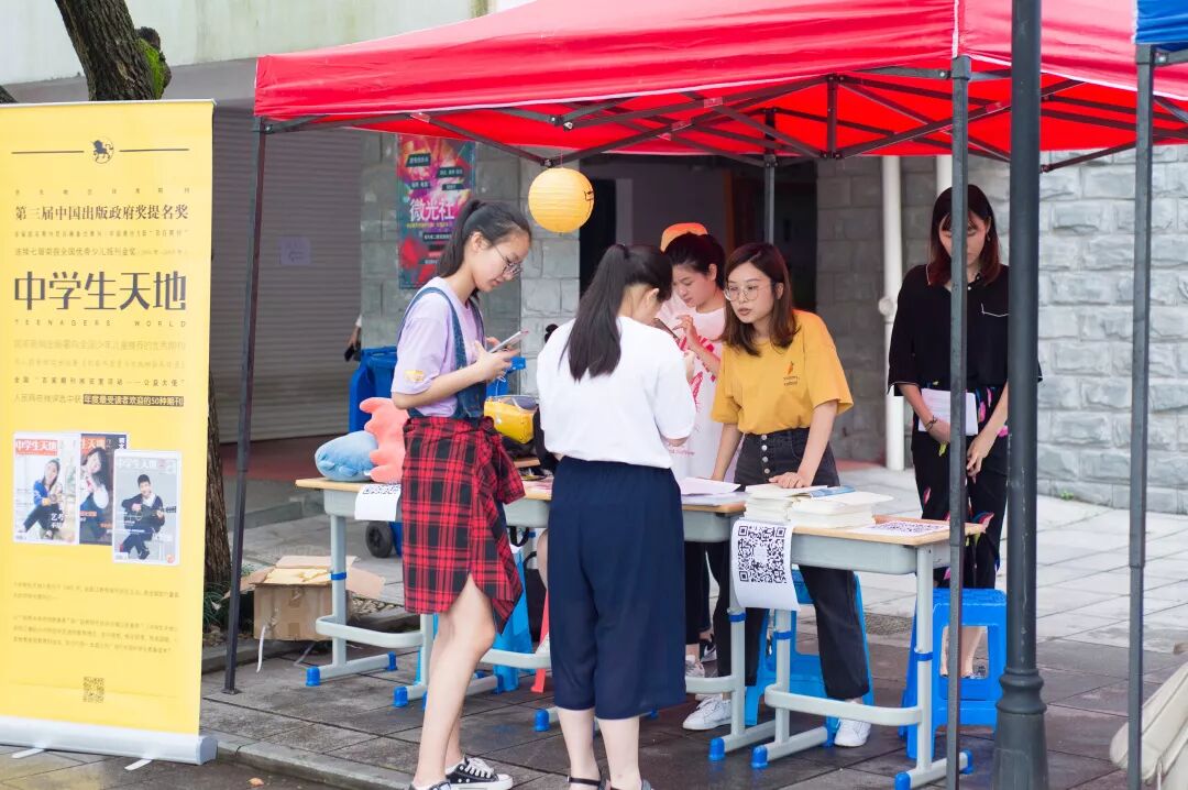 这一次,小编不仅作为观察者,更成了参与者。在“中学生天地”的摊位上,我们摆放了杂志和丰富的奖品。被美丽的小编和精美的礼物吸引而来的同学络绎不绝,大家认真翻阅杂志,参与微信里的非遗问答活动,在做题的过程中,很多同学惊呼对于非物质文化遗产长了不少知识。