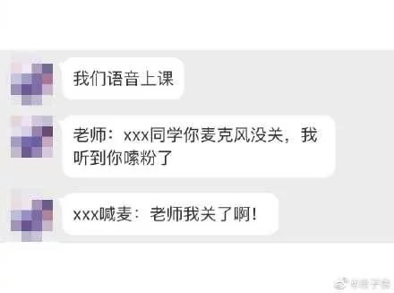 邹游靖:就刚刚,我们早上一二节课,有同学没关麦还在打呼噜,更好笑的是,另一个同学也没关,但他不知道,他大声的叫他妈妈出来听,“妈!我们这课有人打呼噜”